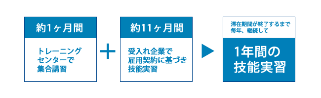 STEP 4. 日本へ渡り、1年間の集合講習および継続的な技能実習